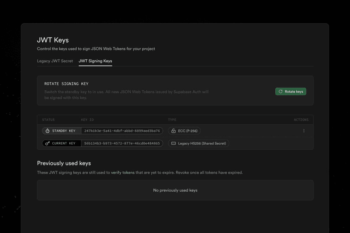 The biggest "wow" is that Supabase designed this so you can migrate and rotate without breaking everyone's sessions: